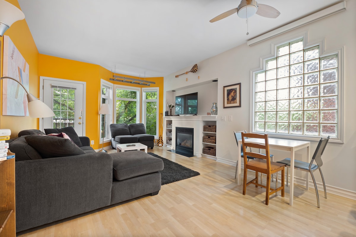 Dit appartement met een achtertuin ligt op een steenworp afstand van Calgary 's Riverwalk. Neem een wandeling van tien minuten naar East Village om het centrum van Calgary te verkennen of loop op 15 minuten van het Stampede-terrein en de Saddledome. Via de steeg achterin vind je jezelf op Inglewood 's beroemde 9th Ave, omringd door een aantal van de beste restaurants en brouwerijen die de stad te bieden heeft. We verwelkomen je om onze achtertuinruimte, BBQ en propaanvuurplaats te gebruiken.