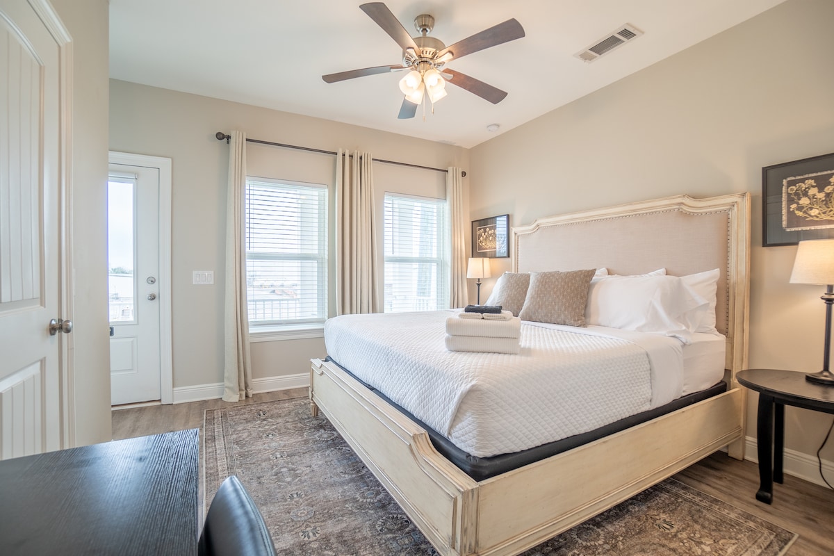 "Dit was de beste Airbnb-ervaring die ik ooit heb gehad" Joseph, ATL Word wakker in je eigen tuinsuite met een fonkelende binnenplaats, een zacht bed en een douche die aan een spa doet denken. Deze favoriete retraite van gasten biedt het beste van Pensacola: loop 10 minuten naar het centrum van het diner en het nachtleven en keer dan terug naar je rustige Old East Hill-sanctuarium. Strandstoelen, handdoeken en koeler inbegrepen voor eenvoudige strandtochten van 15 minuten. Perfect voor stellen, solo-reizigers die privacy, comfort en attente gastvrijheid willen net buiten het centrum.