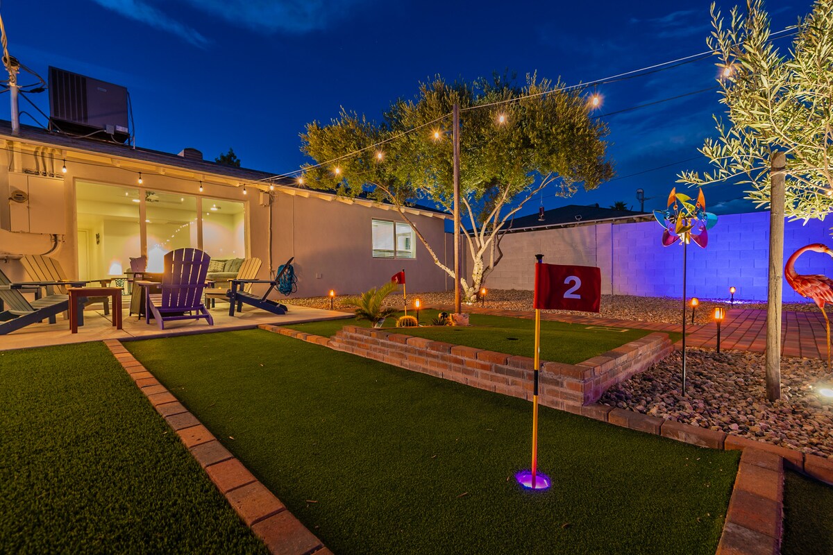 Nieuw HUIS! Maart 2024! GRATIS VERWARMDE POOLIN WINTER EN HOTTUB + GEEN SCHOONMAAKWERKZAAMHEDEN! BETAAL NIET VOOR ZWEMBADVERWARMING BIJ IEMAND ANDERS AIRBNB! - GLOEDNIEUW Mooi gerenoveerd huis met 3 slaapkamers en achtertuin in resortstijl, op slechts enkele minuten van Old Town Scottsdale! Gratis verwarmd zwembad, bubbelbad, vuurplaats, minigolf, pingpong, gigantische schaken, + snelste wifi en smart-tv 's! Het huis is volledig gevuld met een gratis koffiebar, buitenbar en de mooiste grasmat voor de hele familie om van te genieten! KABEL-TV'S !