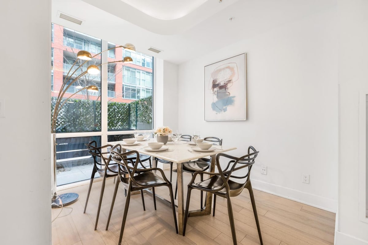 Welkom in mijn huis! Mijn luxe herenhuis van 1400 vierkante meter is gunstig gelegen in het hart van het entertainmentdistrict en ligt in de buurt van alle belangrijke bezienswaardigheden van Toronto! Het heeft 2 prachtige slaapkamers met 3 volledige badkamers en een slaapbank die veel ruimte biedt voor maximaal 6 personen. Het is volledig uitgerust met alles wat je nodig hebt, waaronder een smart-tv, snelle wifi, parkeerplaats en voorzieningen van het appartement, zoals een fitnessruimte en een bubbelbad.