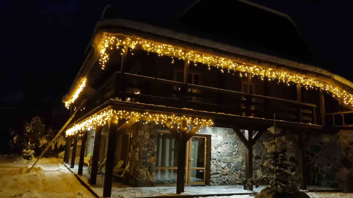 Gezellig, rustig en modern vakantiehuis met sauna en hottub met jacuzzi. Locatie op slechts 4 km van het stadscentrum midden in het bos. Wij bieden een comfortabel en stil verblijf buiten de stad. Vakantiehuis is uitgerust met alle noodzakelijke dingen om te verblijven - verwarming, airconditioning, goed uitgeruste keuken, toilet, douche, smart-tv, gratis parkeergelegenheid. Een tweepersoonsbed bevindt zich op de loft en een opvouwbare bank bevindt zich in de woonkamer. Sauna en bubbelbad zijn tegen een toeslag - bad 60EUR, sauna 30 EUR. Huisdieren zijn niet toegelaten!