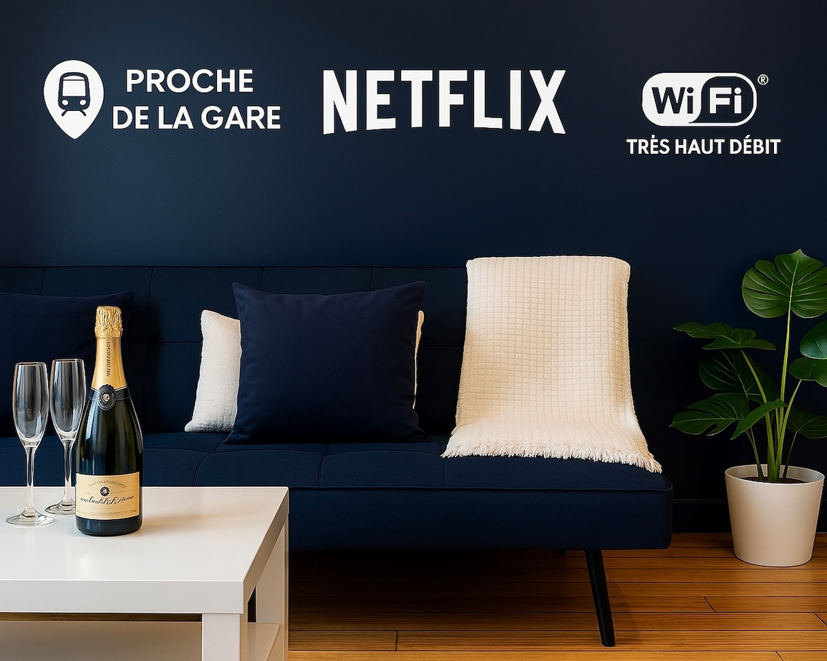 Dit moderne en verfijnde appartement is ideaal gelegen op twee minuten lopen van het treinstation Aulnay-sous-Bois, in een rustige en aangename omgeving, en combineert comfort en oud karakter voor een uitzonderlijk verblijf. Het is volledig uitgerust en biedt ultrasnelle wifi, een verbonden UHD-tv en een keuken die is ontworpen voor je maaltijden alsof je thuis bent. Een bevoorrecht adres, met gemakkelijke en directe toegang tot de hele regio Parijs.