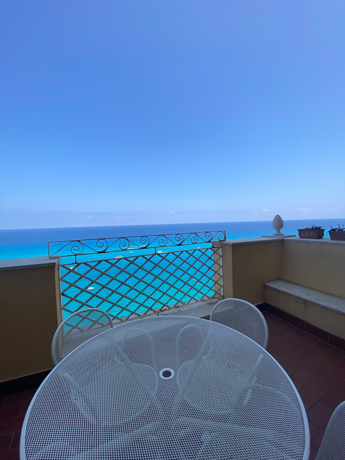 5th floor open, very spacious, light filled apartment with elevator. Wide views of the Mediterranean Sea and Aeolian islands including Stromboli. Sit on our balcony and enjoy the sunset over the sea, then walk to the historical centre in 2 minutes for shops, restaurants and bars. No car necessary! The town's best pasticceria, Peccati di Gola, is on our ground floor. Tropea has some of the best beaches and lidos in Europe, great festivals, and a great farmer's market every Saturday.