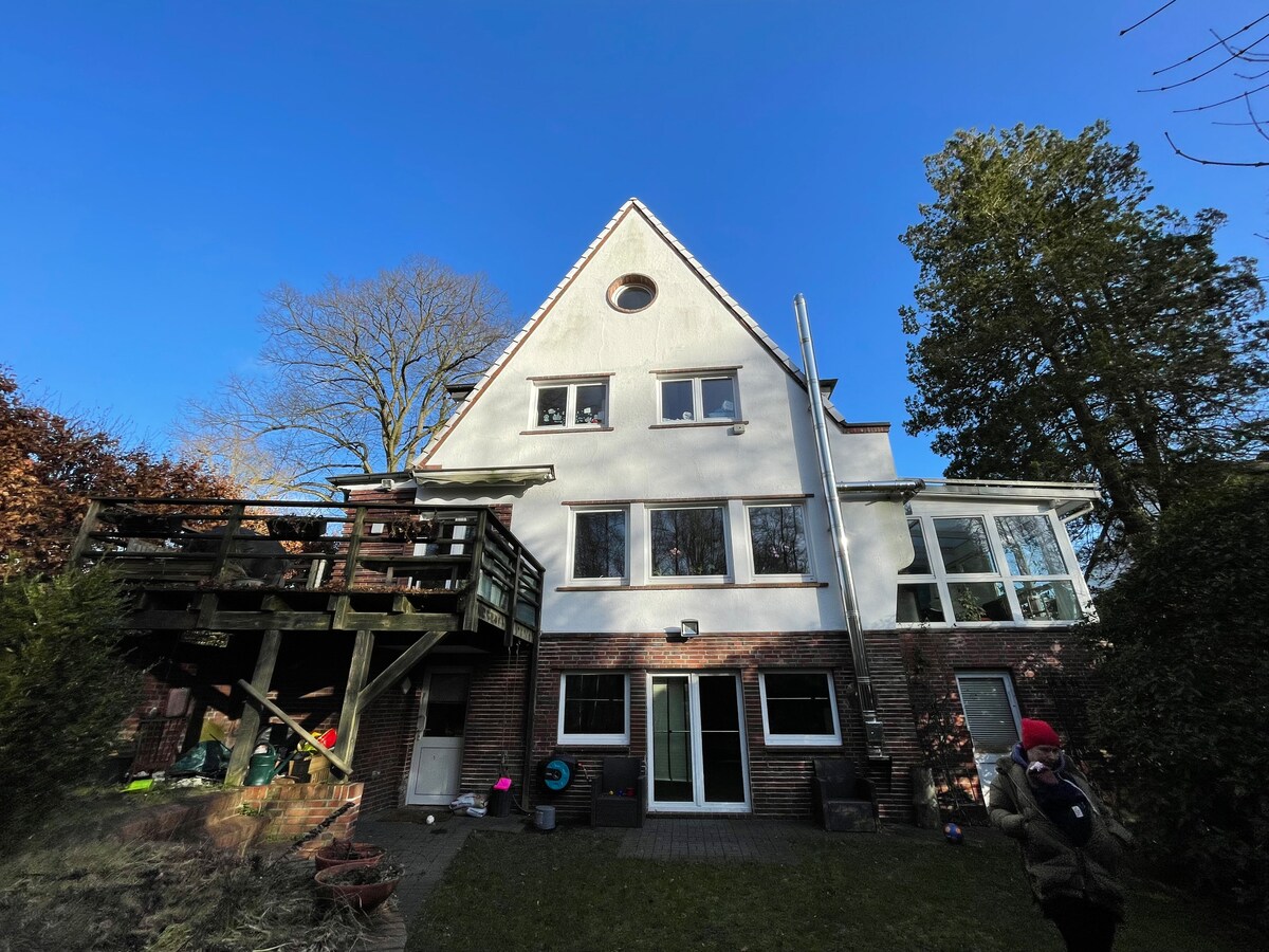 Een mooie Hamburg aan het einde rijtjeshuis op een rustige doodlopende locatie met een ruime tuin, twee terrassen en daarnaast een overdekte zit-/eethoek . De lichte en moderne kamers zijn erg gezellig en nodigen je uit om te blijven hangen. Vermeld moet worden dat de slaapkamers allemaal bereikbaar zijn via trappen. Het natuurgebied met een grote speeltuin, evenals de Holstentherme liggen op slechts enkele minuten loopafstand. HH Airport is in ongeveer 25 minuten met de auto te bereiken.