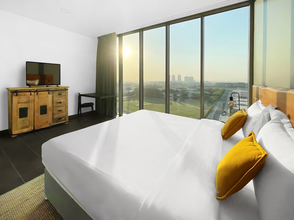 📍 Locatie De hotelkamer is gelegen in het hart van Jumeirah Village Circle (JVC), Dubai. 🚇 Dichtstbijzijnde metro: Dubai Internet City – 11,5 km verderop (Gratis geplande busdienst beschikbaar naar geselecteerde metrostations en winkelcentra) 🛍️ Dichtstbijzijnde winkelcentrum: Circle Mall JVC – 2 km verderop Afstand tot het✈️ vliegveld: Ongeveer 25–30 minuten van Dubai International Airport