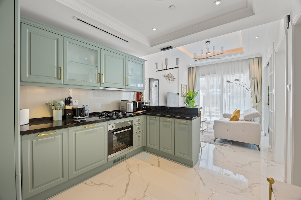Stap in ons prachtige en uniek ruime luxe appartement met 1 slaapkamer, zorgvuldig ontworpen om een ongeëvenaarde ervaring te bieden voor een gezin van 3 (2 volwassenen + 1 kind), koppels (2 volwassenen), soloreizigers of externe professionals. Dit is niet alleen een plek om te verblijven - het is een toevluchtsoord dat is ontworpen om je lichaam en ziel te voeden. Vanaf het moment dat je binnenkomt, word je begroet door een strakke, moderne leefruimte met hoogwaardige afwerkingen en doordachte details, die de toon zetten voor een onvergetelijk bezoek aan Dubai.