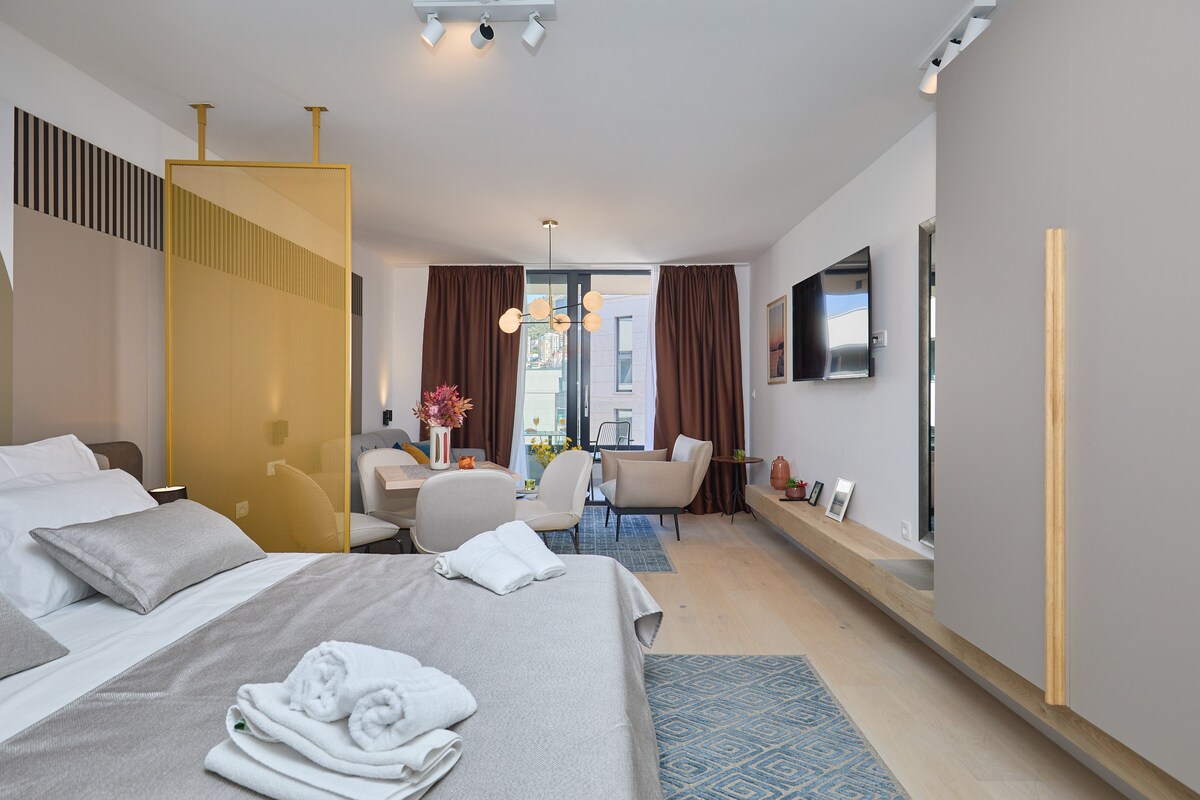 Gloednieuw artistiek en uniek studio-appartement in het centrum van Dubrovnik met een eigen balkon. Supermarkten, winkelcentra, restaurants, bars en bushalte op een paar minuten lopen. Op 20 minuten lopen van de oude binnenstad van Dubrovnik of op een minuut afstand met de bus. Appartement heeft een lift, dus er zijn geen trappen om het te bereiken. Het dichtstbijzijnde strand ligt op 7 minuten lopen. Appartement heeft een eigen parkeerplaats in de garage