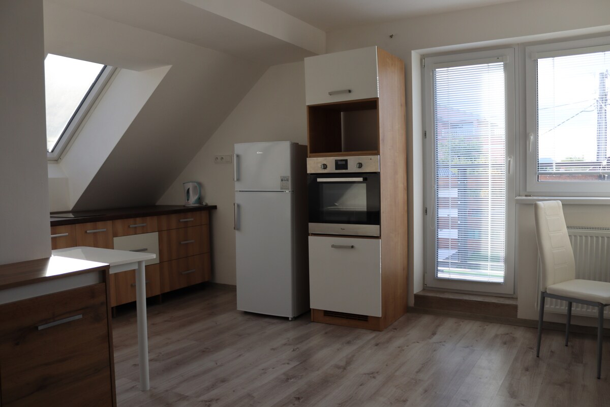 Uw nieuwe minimalistische appartement op het landgoed Nova terasa biedt een comfortabel verblijf voor maximaal 2 personen. Het is gelegen in een nieuw landgoed op slechts enkele minuten van het centrum. De ruimte is volledig ingericht (keukenapparatuur, wifi, Antik-tv, ingebouwde wandluidsprekers, enz.) en is klaar voor je verblijf. Gratis parkeergelegenheid beschikbaar in de aangewezen ruimte vlak bij de voordeur. De veiligheid van het pand en de gasten wordt verzorgd door een particulier beveiligingsbedrijf.