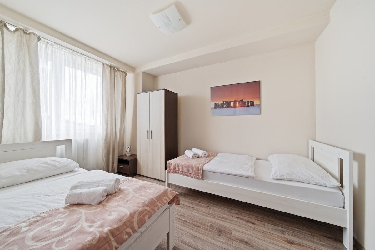 Stijlvol appartement met 3 slaapkamers waar je je thuis zult voelen! Geniet's ochtends van je koffie op het balkon met schommel en uitzicht bij zonsopgang. Het appartement is volledig uitgerust – moderne keuken, comfortabele bank, snel internet, tv en alles wat nodig is voor het leven en comfort. Ideaal voor families, toeristen en zakenreizen. Gezellige sfeer, geweldige locatie dicht bij het centrum van de stad – kom gewoon genieten.