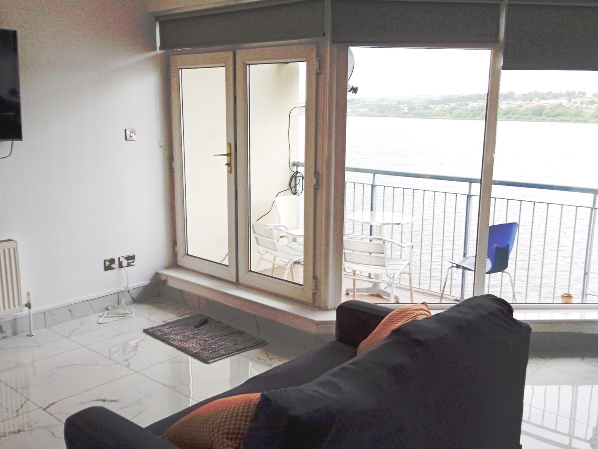 stijlvol appartement op deze centraal gelegen plek aan de rivier de Foyle Met geweldig uitzicht op de vredesbrug en de foyle-brug en het aanlegsteiger. snel lopen naar het lokale nachtleven met eindeloze bars en restaurants. alle bezienswaardigheden van Derry op loopafstand. ontwaak ontspan op het balkon en zie de wereld voorbijgaan met een kopje koffie met uitzicht op de beroemde rivier de Foyle we hebben een ring deurbel beveiligingscamera aan de buitenkant van het pand op het voordeurframe alleen voor beveiligingsdoeleinden