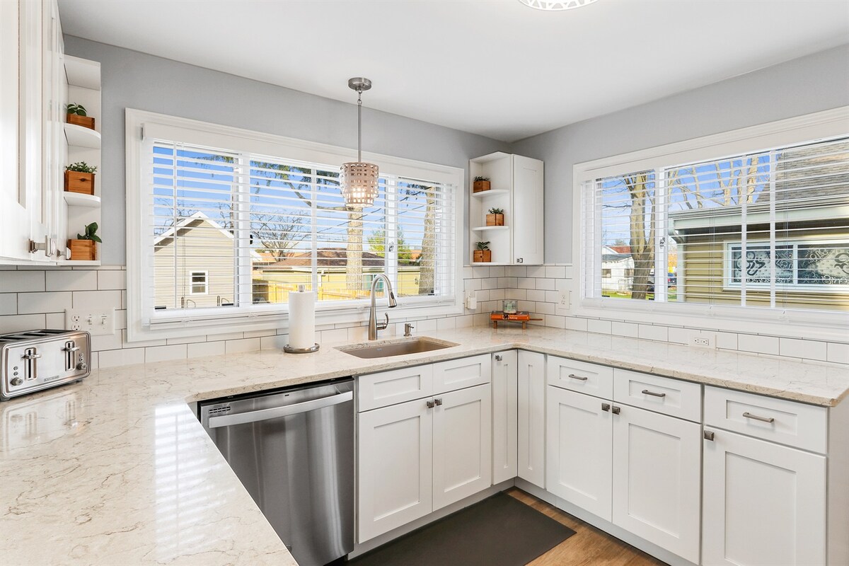 Welkom bij Clover Cottage, een rookvrije, gezinsvriendelijke woning met moderne updates, op korte loopafstand van strand, meer, koffie en restaurants (en ijssalons!). Geniet van koffie of thee op de veranda en ontspan in de ruime achtertuin met bubbelbad, grill en vuurplaats. Strand is 0,7 mijl lopen. De keuken is volledig uitgerust, waaronder een blender, Keurig, espressomachine en nog veel meer. Lokale bezienswaardigheden zijn onder andere muziek aan het meer, Kishwauketoe Nature Conservancy, Yerkes Observatory en meer Babyhekje aanwezig.