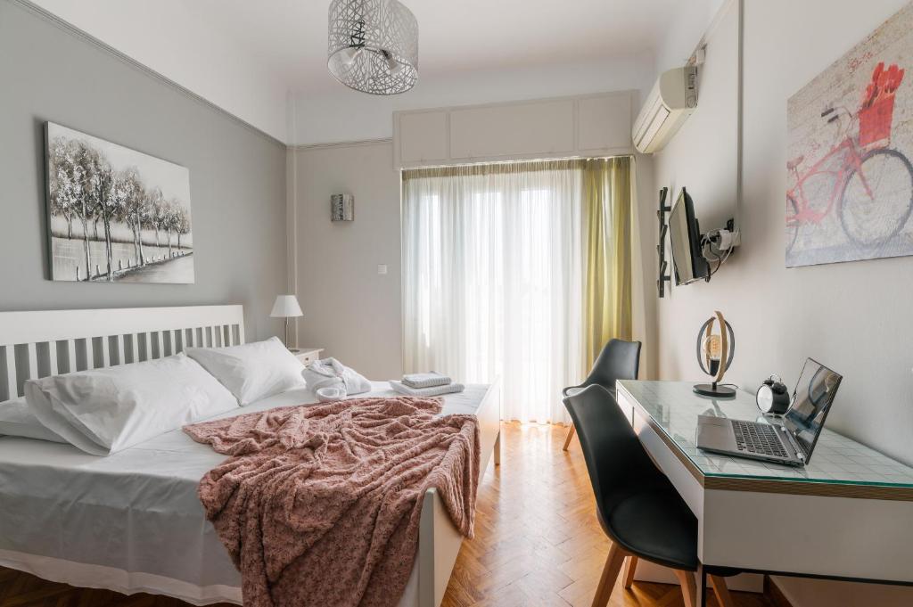 Een volledig gerenoveerde ruimte, bijzonder licht en modern, in een prachtig neoklassiek gebouw in de wijk Mets (Pagrati). Het ligt naast Kallimarmaro (Panathinaiko Stadion) en zeer dicht bij het centrum van Athene. Zeer dicht bij winkels en cafés, aangezien het slechts een paar meter verwijderd is van het Varnavas-plein. De kamer heeft een tweepersoonsbed, een bureau, een tafel, een tv met satellietantenne, een koelkast en wifi.