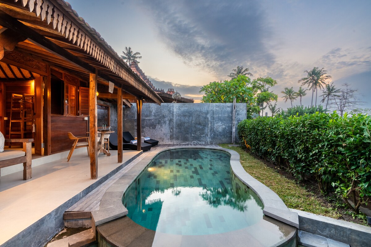 Authentieke Balinese houten kamer met gedeeld zwembad