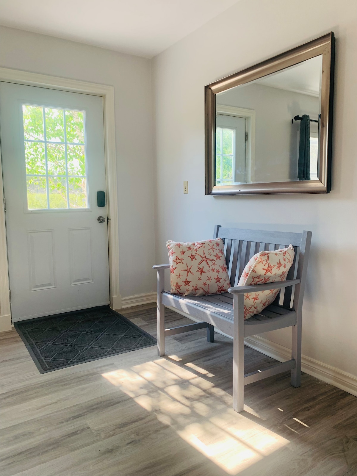 Geniet van dit prachtige appartement met 1 slaapkamer met patio, bubbelbad, inloopdouche, wasserette, dok, waterglijbaan, zandstranden, boothelling, 100” scherm en projector, wifi, uittrekbare bank, paddleboard, kano, kajaks en waterfiets ter plaatse. Dit is de begane grond van een huis op een landgoed van 7 hectare. Er is voldoende ruimte om rond te dwalen en te genieten van de 400 voet waterkant die geweldig is om te zwemmen, kajakken en vissen.