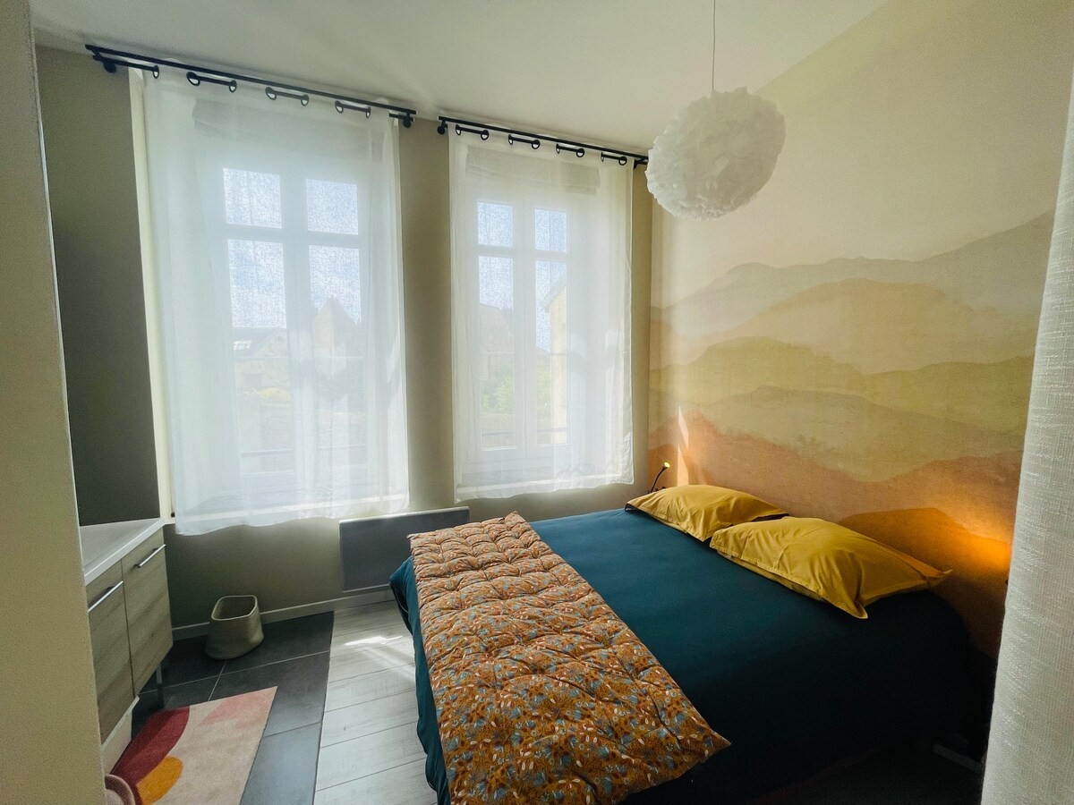 Appartement van 66 m2, ingericht met curiosa, vintage en elementen geïnspireerd door de Harry Potter-wereld ✨ ~>2 slaapkamers met kleedkamers. Inclusief een met een direct uitzicht op de basiliek ~>Lichte badkamer, bad/douche, dubbele wastafel, met handdoeken en haardroger, stijltang, droger ~>Een gezellige woonkamer met 2 banken, met zijn grote bibliotheek en nep open haard, een grote eettafel. ~> Volledige keuken (koffie, thee aangeboden) ~> Verrassingsmand vanaf 2 nachten.