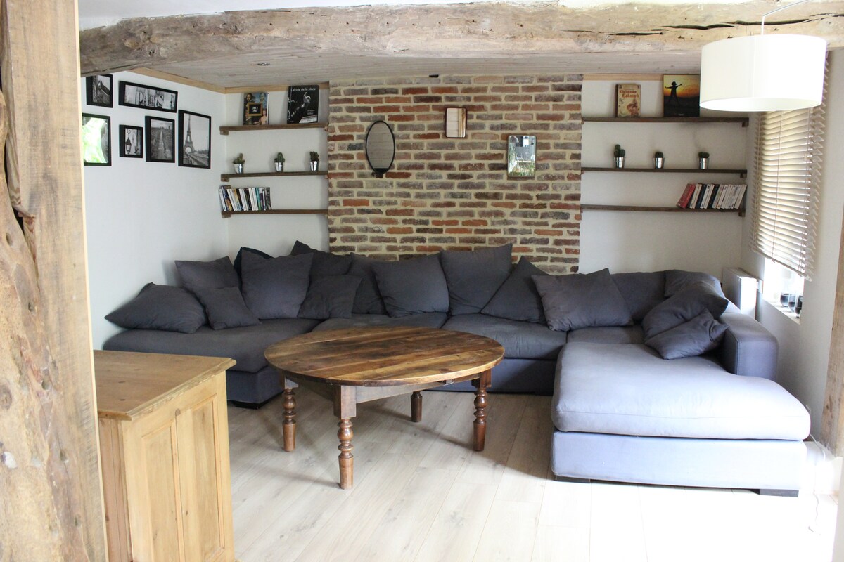 De studio ligt in een oude schuur die we in 2014 hebben gerenoveerd. Het maakt deel uit van een 18e-eeuws huis in het hart van normandië. We hebben het gezellig gemaakt om je je thuis te voelen terwijl we er in de winter in wonen. Op het platteland, zeer rustig, hebben we een grote tuin waar je van kunt genieten. Dicht bij Rouen, Dieppe en stranden : 30 mn, Etretat 70 km, Calais 2 uur. Ideaal voor een stel, ook met baby. Stopover naar de souht, weekenden of feestdagen.