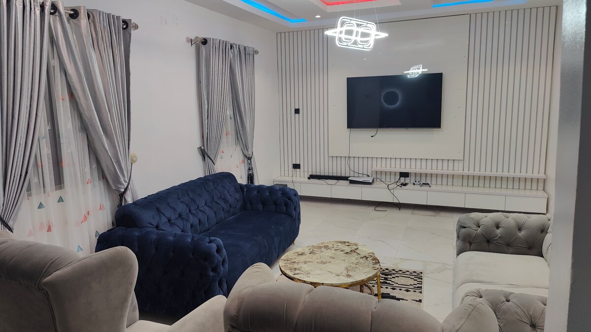 Ons shortlet-appartement is ontworpen voor gezinnen, groepen en professionals. Deze ruimte beschikt over eersteklas voorzieningen, waaronder een PlayStation 5, een eigen fitnessruimte en een snookertafel voor je plezier. Geniet van ononderbroken 24/7 stroom en een centrale locatie die de beste plekken van de stad binnen handbereik brengt. Om volledige transparantie te garanderen, zijn alle advertentiefoto's gemaakt op een mobiel apparaat zonder enige bewerking. Wat je ziet is precies wat je krijgt. We kijken ernaar uit je binnenkort te mogen verwelkomen.