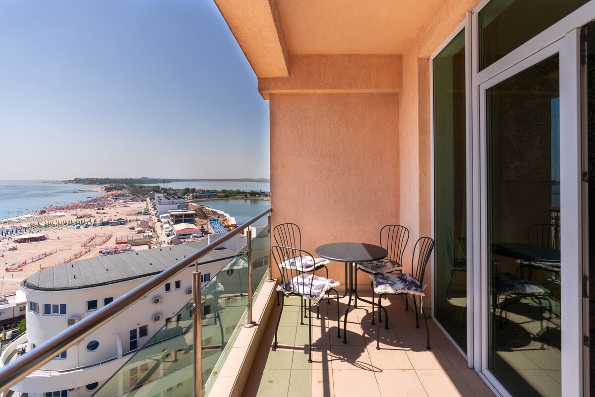 Ervaar de allure van de uitzonderlijk ruime kamers van Hotel Poem, met een benijdenswaardig, panoramisch uitzicht op het meer van Bolona. Deze zeer gewilde accommodaties liggen direct aan het strand en bieden een onvergetelijk verblijf. Ons dakterras is jouw oase! Geniet van een prachtige infinity pool, een ontspannende jacuzzi, een serene sauna en de Poem Sky Bar met een panoramisch uitzicht op het Belona-meer en de Zwarte Zee. Begin je dag met een gratis ontbijt, inbegrepen bij je verblijf.