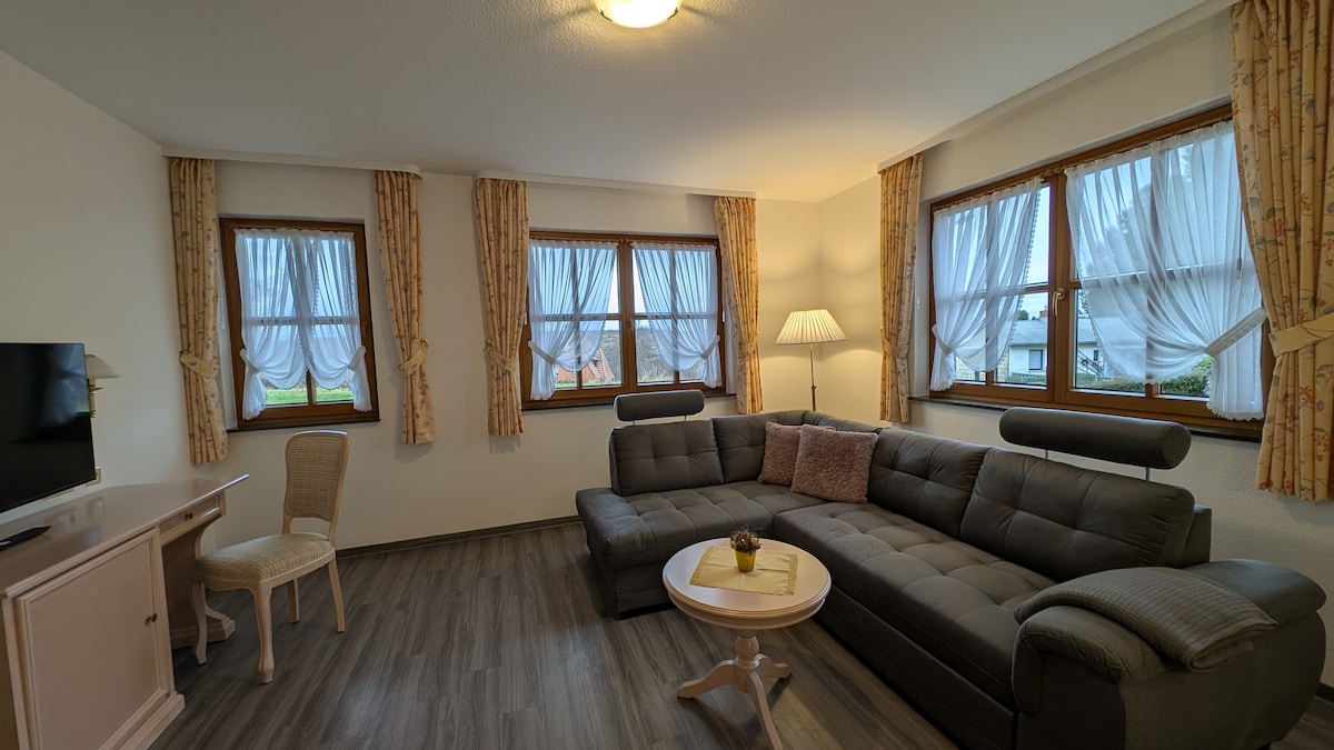 ✨ Exclusive Apartment with wellness & fitness facilities – space for up to 11 guests near Göttingen ✨ ➝ Spacious apartment for families & groups of up to 11 people ➝ 3 bedrooms, 2 sofa beds & 2 extra beds ➝ Infrared sauna & wellness area included ➝ Private fitness room with equipment ➝ Quiet location near forest & Plesse castle ruins ➝ Free WiFi & parking ➝ Ideal for families, friends & retreats