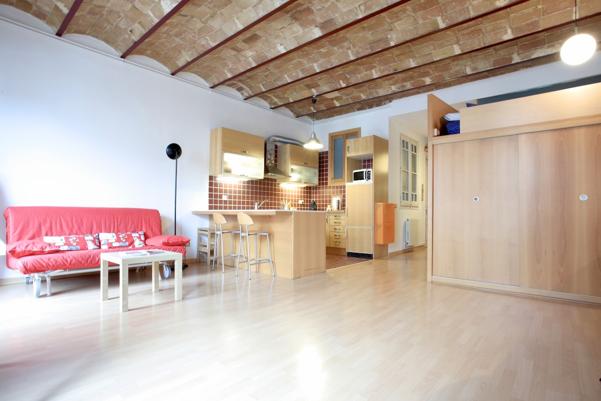 Gelegen in het hartje Barcelona vind je onze comfortabele studio. Aan de grens van bohemien ¨Gracia¨ en statig ¨Eixample¨ krijg je het beste van twee werelden. De meeste schatten van Barcelonas liggen op slechts een steenworp afstand. Dit goed uitgeruste en ruime appartement is op de begane grond van een typisch ¨modernistisch gebouw uit het begin van de 20e eeuw. Het appartement is een interieur. Dit betekent dat er weinig daglicht is. Het appartement is goed verlicht en heeft een fijne sfeer.