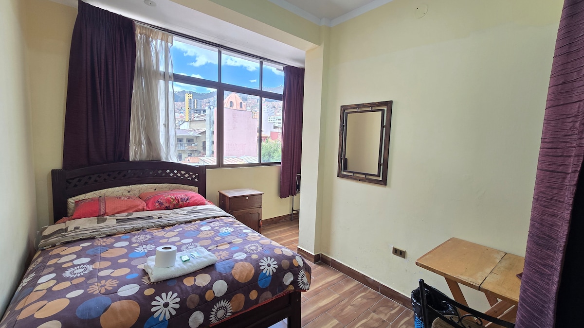 Welkom in jouw Exploration Hub! Dit is een volledige privé-gastensuite (klein appartement) gelegen aan het hart van La Paz. Plaza Abaroa is letterlijk een stap verwijderd! Je bent dicht bij alles. De hele plek is van jou om van te genieten. Je eigen ingang, slaapkamer met tv en bureau, badkamer, keuken en eetruimte. De ruimte is in een oude constructie, maar is de perfecte uitvalsbasis voor ongecompliceerde reizigers.