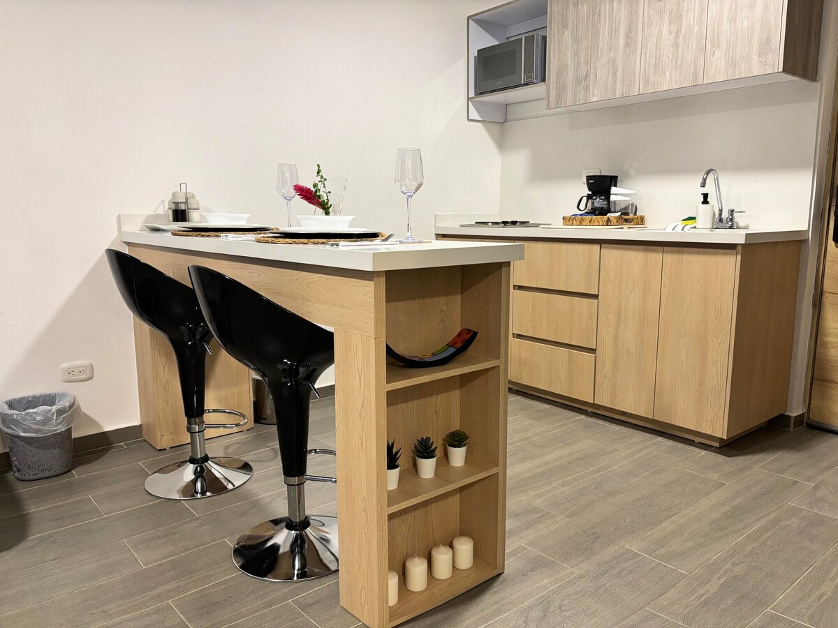 Prachtig apartaestudio appartement 13 gelegen buurtoevluchtsoord met een panoramisch uitzicht op het noorden van de stad, met elegant en modern design dat een comfortabel en aangenaam verblijf garandeert. Vanwege de bevoorrechte locatie is het dicht bij universiteiten, klinieken, winkelcentra (Mall Plaza, Unicentro, Premier) supermarkten, roze gebied ten zuiden en zeer dicht bij het openbaar vervoer (station van mijn toevluchtsoord en warm 2 blokken verderop), en een blok van Calle Quinta (hoofdstraat van onze stad)