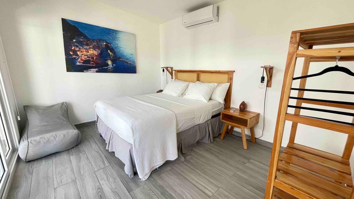 TERUG OP DE MARKT! Dit volledig van airconditioning voorziene privégelijkvloersappartement heeft volledige moderne voorzieningen, waaronder airconditioning, warm water, keuken met volledige koelkast en fornuis, zwembad, glasvezelwifi en uitzicht op de oceaan en de jungle en een barbecue. Grote patio aan de voorkant leidt naar het zwembad en de zithoeken. Klanten hebben toegang tot het platte dak op de 4e verdieping, ideaal voor zonsondergangen en het ontvangen van gasten. Beste appartement in Playa Maderas!