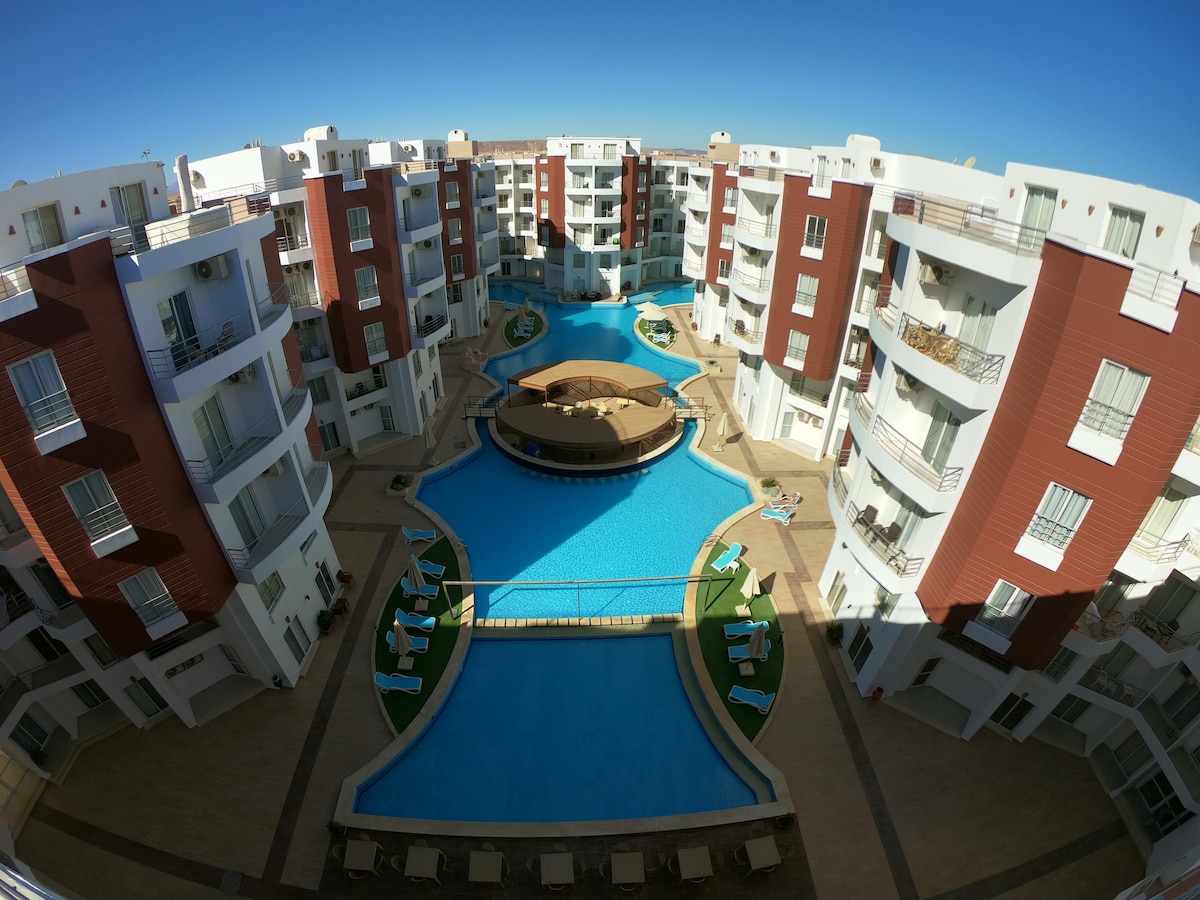 Kleurrijk 1BR Apt/gratis toegang tot zwembad en lagune@ElGouna