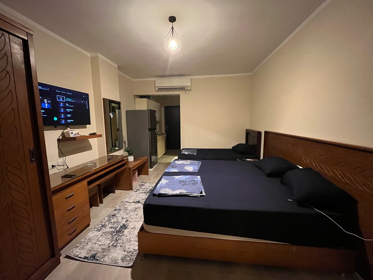 Huurwoning in Al-Alamein City, aqua View kilo 91. Ontsnap naar onze gezellige zomerstudio aan de prachtige noordkust van Egypte! Deze volledig ingerichte ruimte ligt op slechts 5 minuten van het strand en biedt airconditioning, een kitchenette, een eigen badkamer en een balkon met uitzicht op het zwembad. Perfect voor stellen of soloreizigers die op zoek zijn naar een ontspannen uitje. Dicht bij cafés, markten en het nachtleven. Aarzel niet om me te sms'en voordat je reserveert.