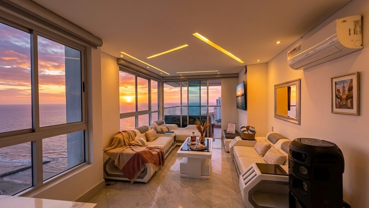 Luxe hoogbouwappartement met uitzicht op de oceaan in Bocagrande + bezoekers