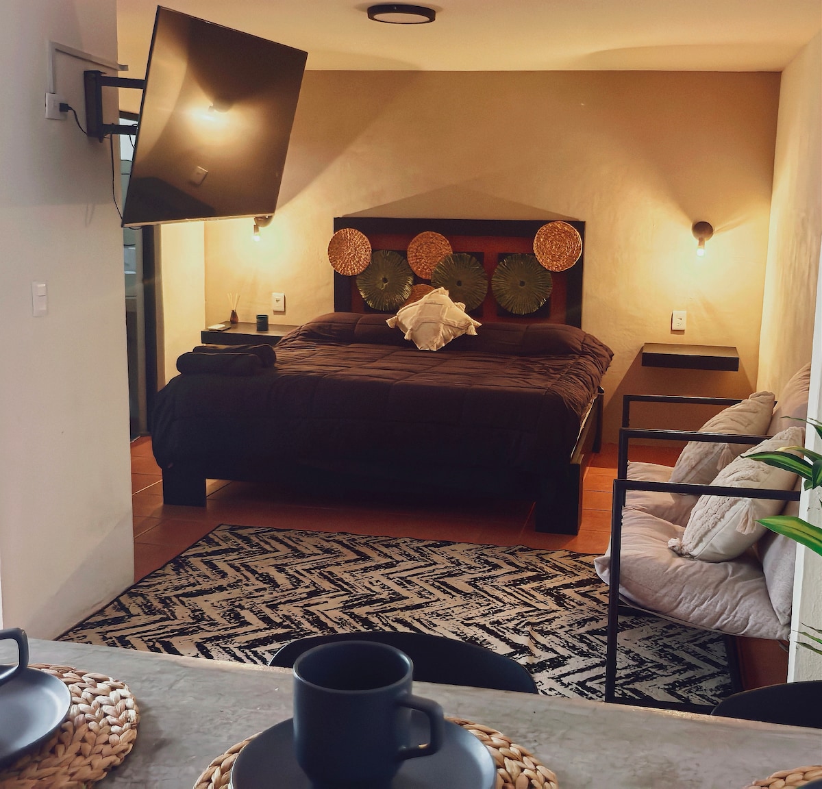 Stap in CASA Espíritu Fuego, waar de geest van Oaxaca opnieuw wordt uitgevonden door doordacht design en handgemaakte schoonheid. Aardse texturen, klei en geweven stoffen vertellen overal verhalen. Gelegen op slechts 3 blokken van Santo Domingo, de beste galeries, verfijnde restaurants en culturele parels van de stad ontvouwen zich voor je deur. Je wordt ondergedompeld in de ziel van de stad waar kunst, keuken en levendige cultuur wachten. Een samengesteld verblijf voor de veeleisende reiziger die op zoek is naar authenticiteit en schoonheid.