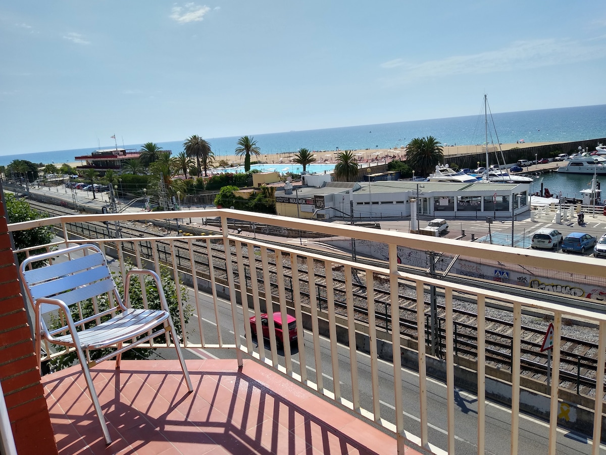 Charming apartment at seaside with views to the sea. Located in a a peaceful town, 15 km away from Barcelona with all facilities and services. Apartment has 3 bedrooms, 2 bathrooms, pool table and a 110 m2 private terrace to sunbath and barbecue.