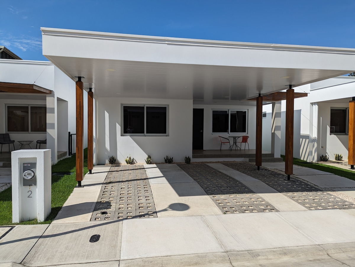 Ontspan in deze gezinsvriendelijke retraite met 2 slaapkamers in een beveiligde omheinde gemeenschap met 24/7 beveiliging, camera's, rustige zwembaden en uitzicht op de bergen. Geniet van airco, 250 Mbps wifi met 3 uur batterij-back-up, Spaanse tv en een robotstofzuiger. Volledig uitgerust met een eigen terras, nabijgelegen supermarkt en lokale frisdranken. Snelle Uber-ritten bereiken het centrum en het strand. Ontworpen door de maker van Jacó Walk, werken we samen met erkende, verzekerde transport- en reisorganisaties.