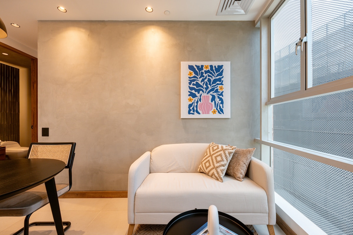 Experience a stunning design-forward apartment in Provenza, in the heart of Poblado—Medellín’s most vibrant and sought-after area, known for top restaurants, nightlife, and unique energy. This brand-new space features a private jacuzzi, AC, and sophisticated furnishings, blending comfort and style. Surrounded by lush greenery, it’s a peaceful retreat just a short walk from best spots. With 1510 sq ft, it’s ideal for relaxing, entertaining, and unforgettable moments in total comfort and privacy.