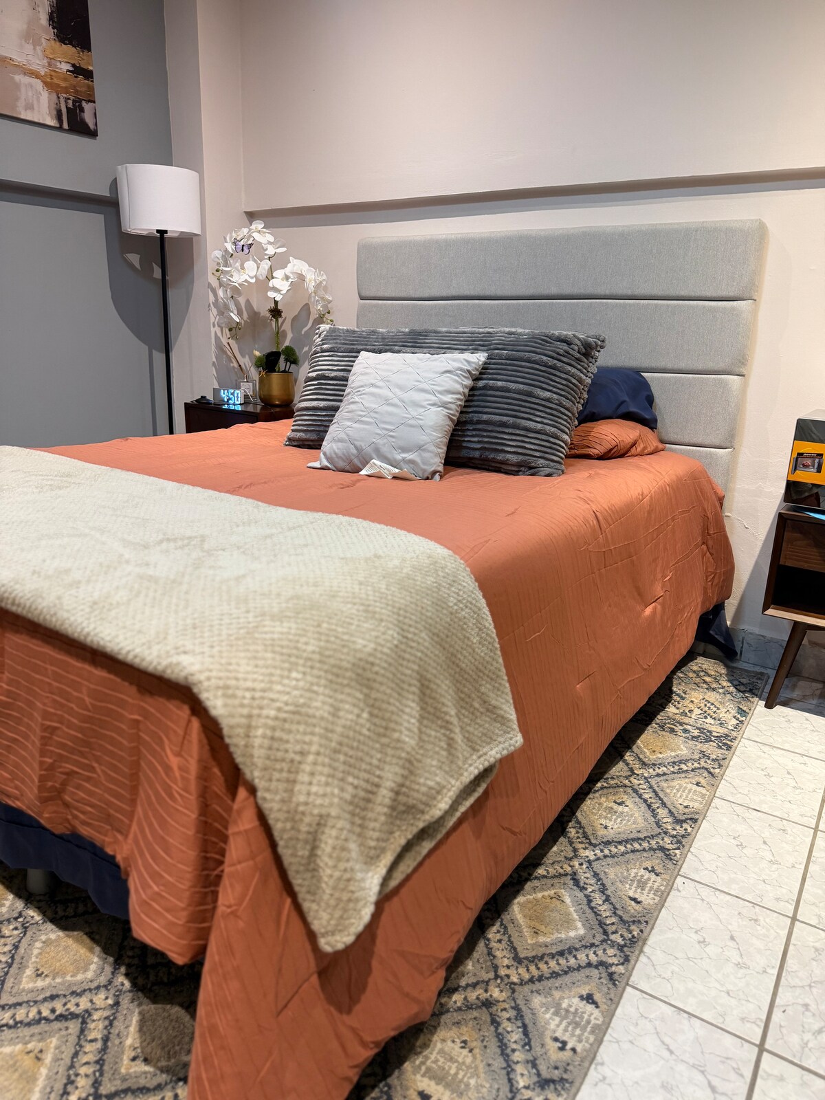 Dit volledig gerenoveerde appartement biedt een rustig toevluchtsoord met volledig nieuwe apparaten en moderne voorzieningen voor een comfortabel verblijf. • Een ruime slaapkamer perfect om te ontspannen na een dag verkennen. •Een keuken die volledig is uitgerust met nieuwe apparaten voor je gemak tijdens het koken. •Een gerenoveerde badkamer voor jouw gemak.Boek vandaag nog je verblijf en ervaar comfort en rust in een van de rustigste buurten in de stad!