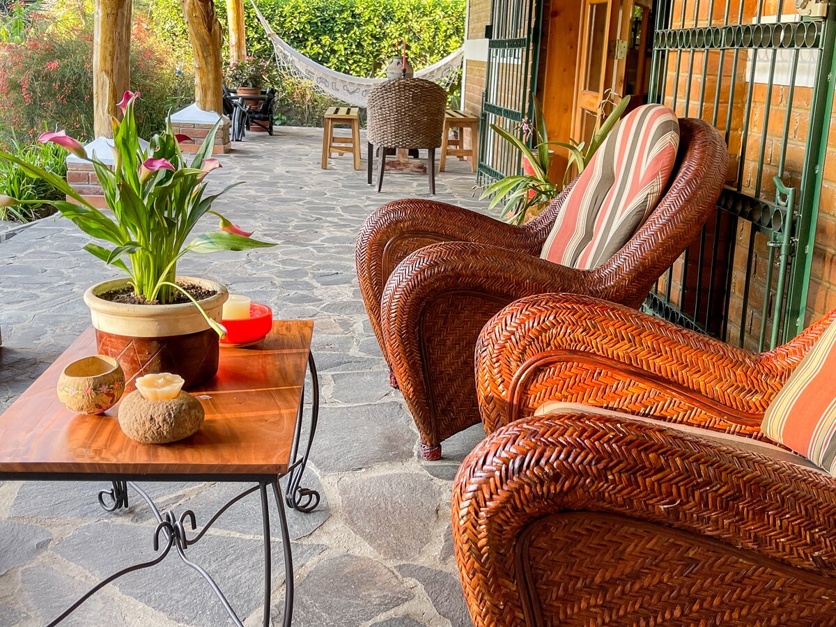 Welkom bij je retraite in hartje Ataco. Hier verbindt elke zonsopgang met uitzicht op het dorp je weer met je wortels, de familie en de rust die je zoekt, of je nu van veraf komt of El Salvador voor het eerst ontdekt. Met een panoramisch terras en de kleurrijke charme van Ataco en La Ruta de Las Flores aan je voeten. Het appartement ligt op een steenworp afstand van het park en van alle gemakken voorzien voor een aangenaam verblijf, geniet van de lokale keuken en bezoek nabijgelegen bezienswaardigheden.