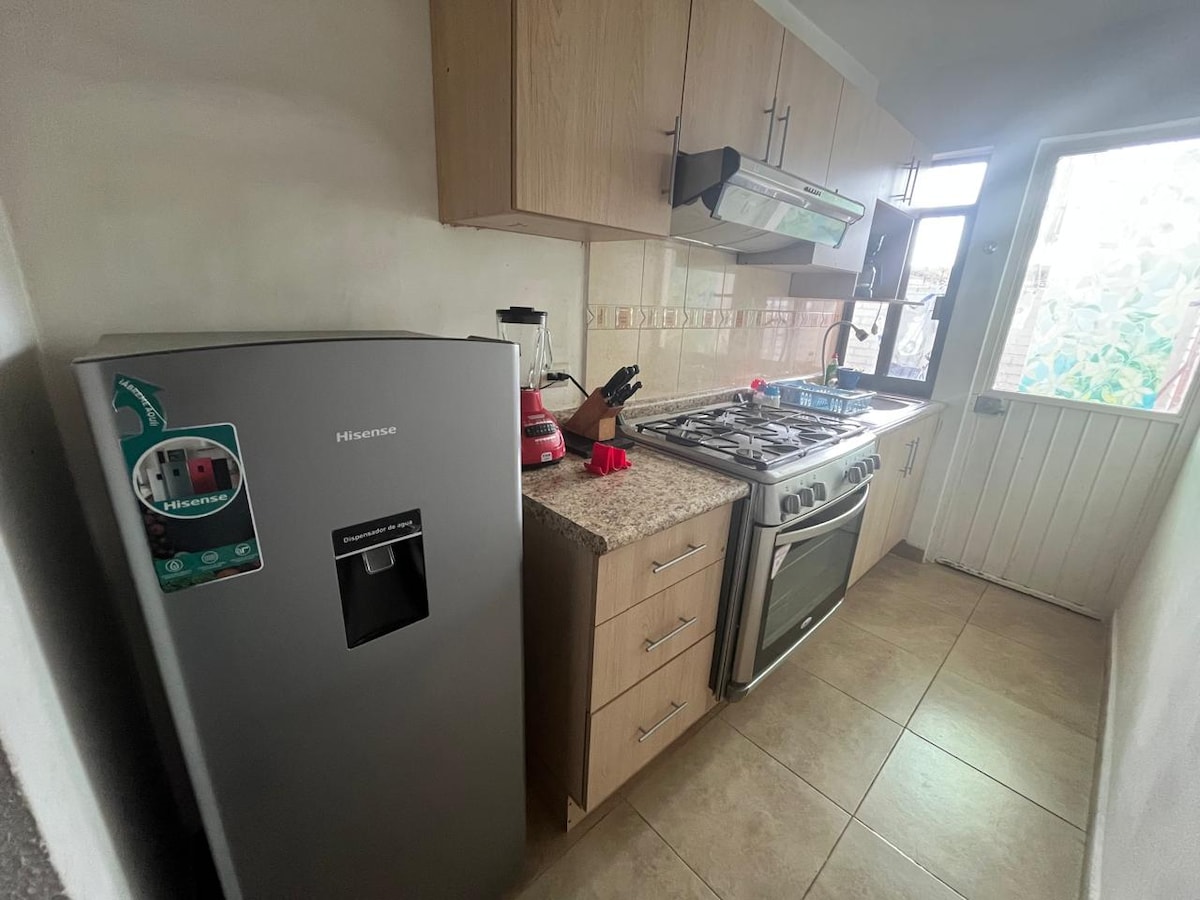 We zijn op een steenworp afstand van Los Berros Park, een van de mooiste in Xalapa vanwege zijn tuinen en immense bomen. Het appartement is omgeven door cafés en restaurants, maar het is perfect om uit te rusten. Op enkele minuten van het centrum, het universiteitsgebied en het Xalapeño-stadion. We hebben airconditioning, een volledige keuken, 1 volledige badkamer, een overdekte patio ideaal voor je huisdier en 1 parkeerplaats buiten het pand.