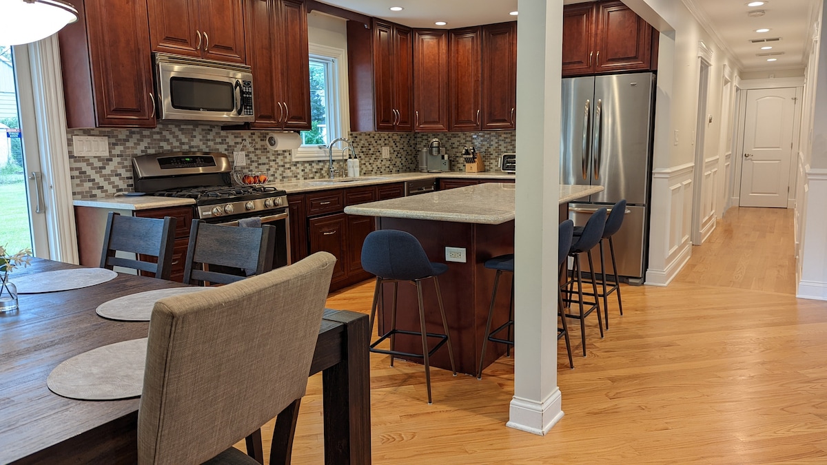 'Jouw thuis thuis' wacht op je korte of verlengde verblijf. Geheel updates en volledig uitgerust voor je gemak, dit huis met drie bedden, twee volledige badkamers, met een ruime achtertuin, een barbecue en een patio, maakt het je meest comfortabele ervaring om Schaumburg en de omgeving te verkennen. Gunstig gelegen op slechts 15 minuten van de luchthaven O'Hare, vijf minuten van het winkelcentrum Woodfield, acht minuten van binnenkort om de thuisbasis van de Chicago Bears te zijn, alle belangrijke interstates, winkelen, uniek dineren en nog veel meer