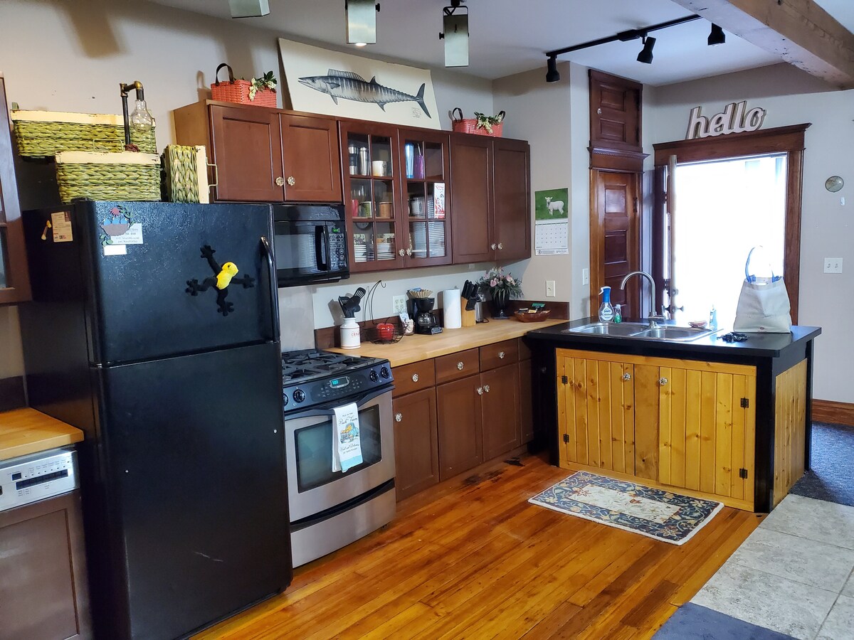 Gezellig huis met één slaapkamer met volledig uitgeruste keuken. Potten en pannen, borden, fornuis, magnetron en koffiepot en koffie allemaal beschikbaar voor de gasten. Roku TV, Wifi, wasmachine en droger ook. Slaapkamer met queensize bed en grote slaapbank in de woonkamer. De ingang heeft geen trappen en handig op straat parkeren bij de voordeur.