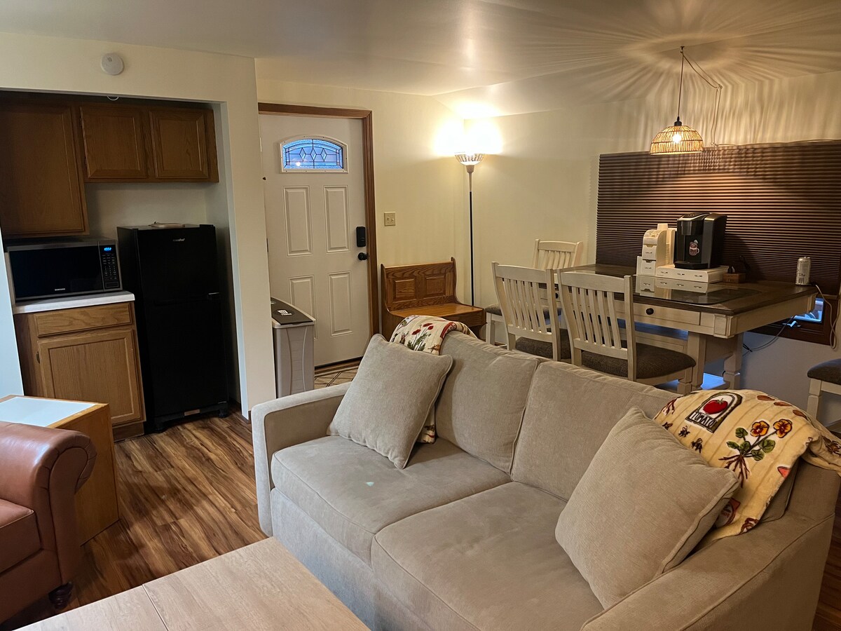 Een fijne plek om te ontspannen of wat werk gedaan te krijgen! Beschikt over een geweldige veranda aan de achterkant met uitzicht op de woning. Dit appartement ligt dicht bij Moog, Fisher Price en de Gow School en heeft een grote slaapkamer met een kingsize bed. Comfortabele woonkamer heeft een full size futon voor een extra bed wanneer dat nodig is. We liggen op nog geen 20 minuten van Kissing Bridge en Buffalo Ski Center. We zijn op slechts 30 minuten rijden van de stad Buffalo en op 40 minuten van Niagara Falls.