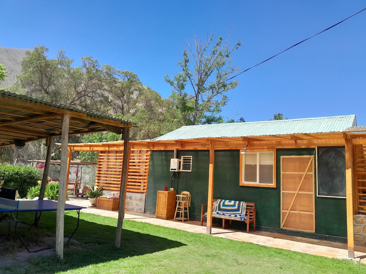 De accommodatie heeft veel buitenruimtes,gelegen in een landelijke omgeving op 7 minuten van de stad Vicuña. De hut heeft een keuken, terras ,badkamer en slaapkamer. Met privéparkeergelegenheid. We zijn toegewijd aan landbouw, we hebben een boomgaard met groenten en dieren die contact met hen kunnen opnemen met de natuur. De slaapkamer is een zeer comfortabele en koele plek omdat ons huis is gebouwd in adobe, dikke modderwanden die geweldige thermische isolatie produceren.
