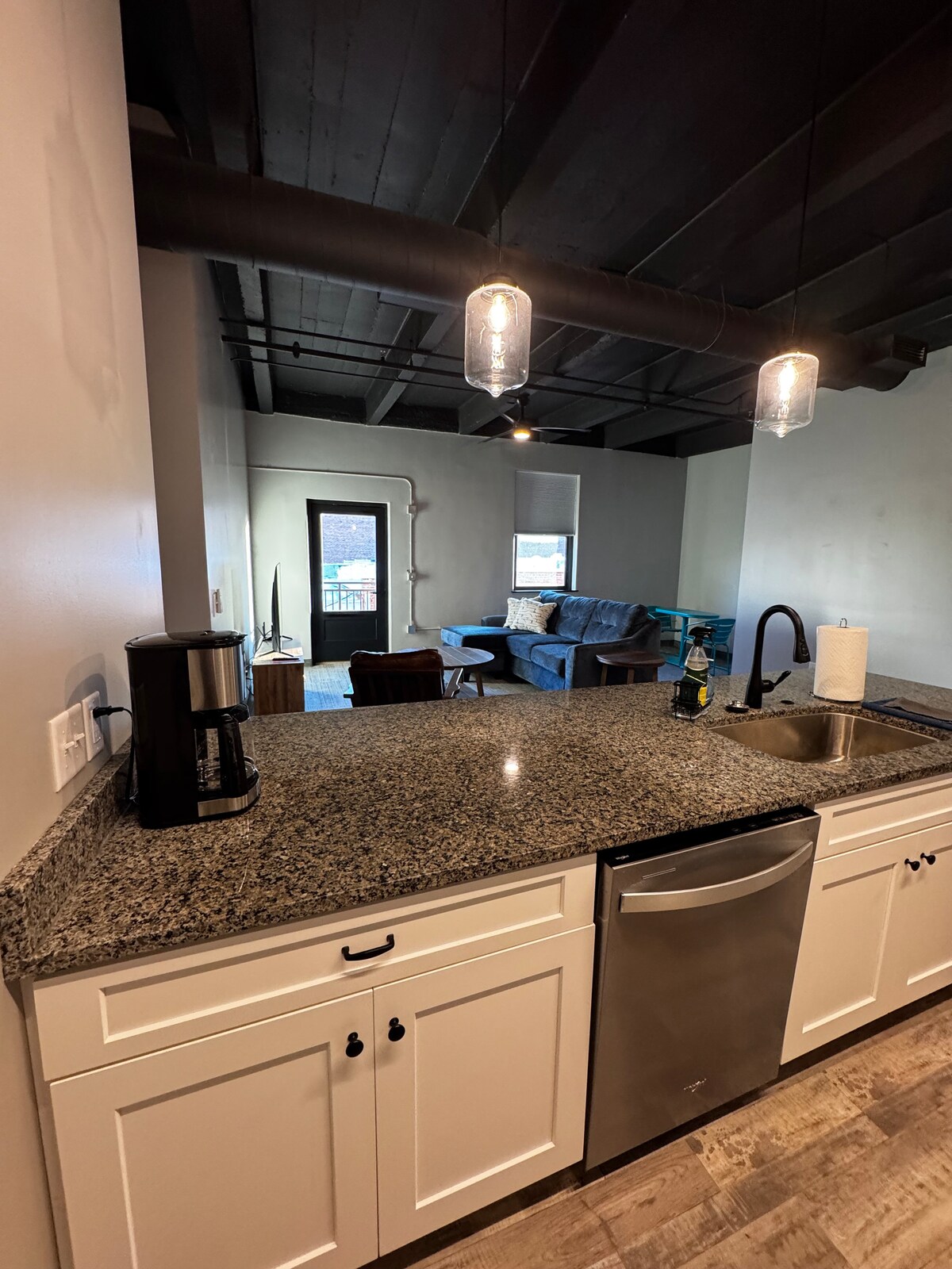Gelegen in het centrum van Emporia 's Art and Entertainment District waar veel grote evenementen worden gehouden. Op loopafstand van het Granada Theater en ESU. Ruime gratis parkeergelegenheid Deze ruimte is gelegen op de benedenverdieping van een commercieel kantoorgebouw dat onlangs opnieuw is gebruikt als gastvriendelijke tijdelijke wooneenheid met kitchenette. Je hoeft niet door te stormen. Mis het niet om in 'The Bunker' te verblijven. De veiligste plek om te verblijven.