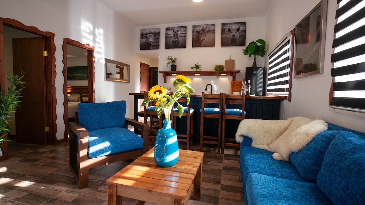 Kom genieten van ontspanning en rust in onze Forest Cabin, omgeven door inheemse bomen, een gevarieerde fauna, waar je onder andere de Chucao en Diucón hoort fluiten. Waar je kunt wandelen met uitzicht op de vulkanen Osorno en Calbuco. Dichtbij Parque Vicente Pérez Rosales, onder andere Lake Todos Los Santos, Saltos de Petrohué, Osorno Volcano. Diversiteit aan sportactiviteiten zoals wandelen, fietsen, kajakken, luifel, of gewoon genieten van een wandeling.