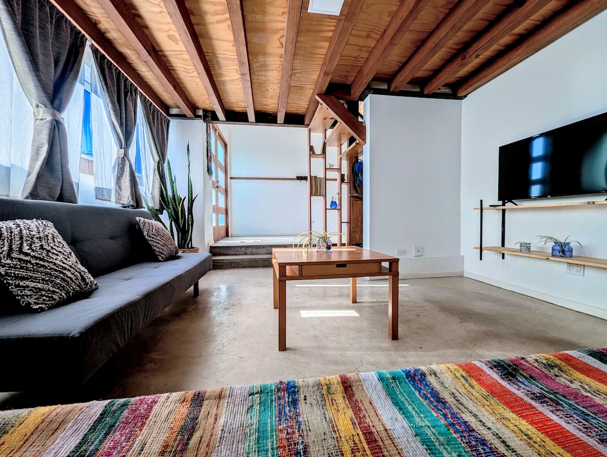 De ruimte wordt voor en na afloop van elk verblijf gedesinfecteerd. Een zeer veilige loft, op eigen terrein. Heeft een eigen ingang. In het hart van het centrum van Ensenada, op vijf minuten lopen van om plaatsen zoals 'Malecón' en het toeristische gebied te bereiken. Openbaar vervoer op de hoek van de loft. Er is een slaapkamer met een complete badkamer, een eetkamer en keuken. Beneden is er nog een woonkamer en patio met een grill en bar. Eigen parkeergelegenheid bij het pand voor één auto.