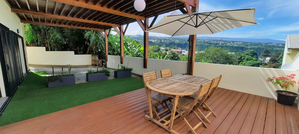 Neem een pauze en ontspan in La Maison Rose gelegen in Entre-deux. Houten huis in het hart van de exotische vegetatie, dicht bij alle voorzieningen (op vijf minuten rijden van het centrum van het dorp). Verhuurgebied gelegen op de begane grond van de villa met onafhankelijke ingang. Twee slaapkamers aanwezig, badkamer, kitchenette en buitenterras. Je ruimte is volledig zelfstandig. Milieuvriendelijke accommodatie en ideaal gelegen voor wandelaars.