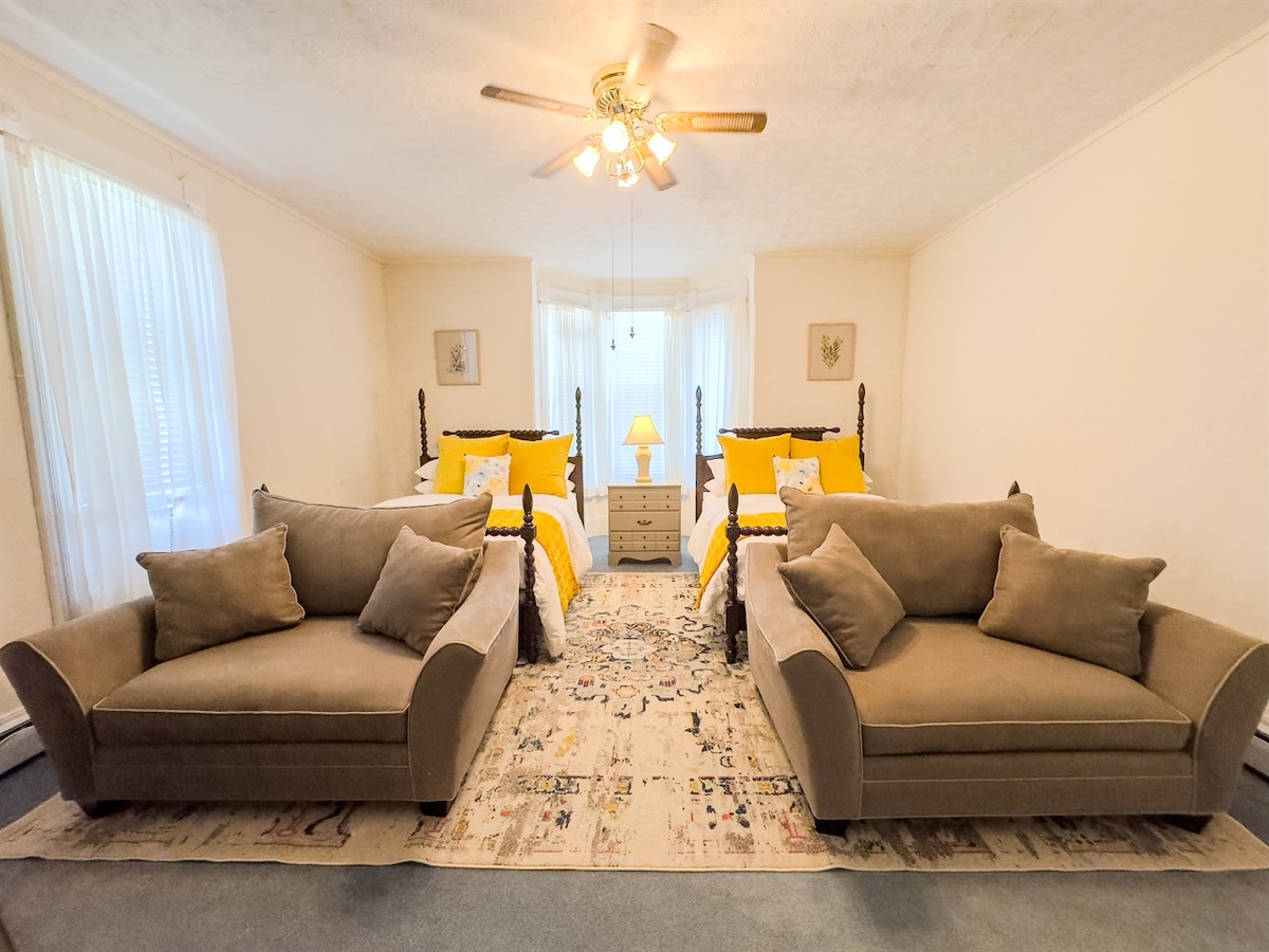 'The Commodore Perry Suite' kamer 7 (voor vijf personen) Deze historische suite eert de held van de Slag bij Lake Erie. Gelegen op de 1e verdieping, biedt het plaats aan maximaal vijf gasten met een 4-post kingsize bed met achtersteven en pleeg hybride matras, twee eenpersoonsbedden en een pop-up onderschuifbed. De kamer is voorzien van Commodore Perry-kunstwerk, dressoir, 55inch tv en USB-oplaadlampen. De ruime badkamer is voorzien van handgrepen en een douchecabine. Geniet van een zelfbedienend continentaal ontbijt op werkdagen en een warm ontbijt in het weekend. Bo