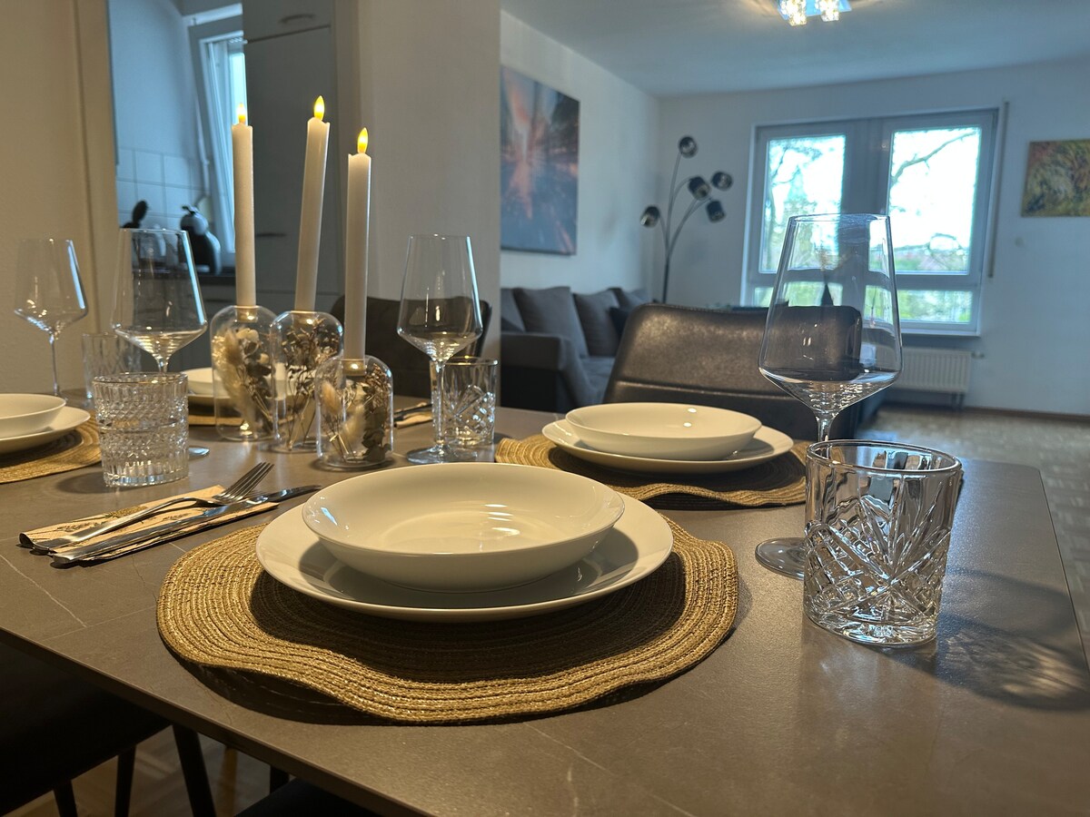 2 Zimmer/34m2 im Neckarbogen, ehemaliges BUGA-Gelände - mit Tiefgaragenstellplatz im autoarmen Quartier! - Herausragende Lage, in der Nähe von - Bildungscampus, Schwarz College, TU München, ETH Zürich - Experimenta - 1 min zum Bäcker - 34qm: 2 Zimmer (Wohn-/Essbereich und Schlafzimmer) mit Bad - 2. OG, Südostseite - inkl. Bettwäsche, Handtücher, Seife, Duschgel, Shampoo - inkl. Kaffeemaschine mit Kapseln, Tee, Zucker, Salz, Pfeffer, Essig, Öl - Verdunkelbar durch hochwertige Jalousien
