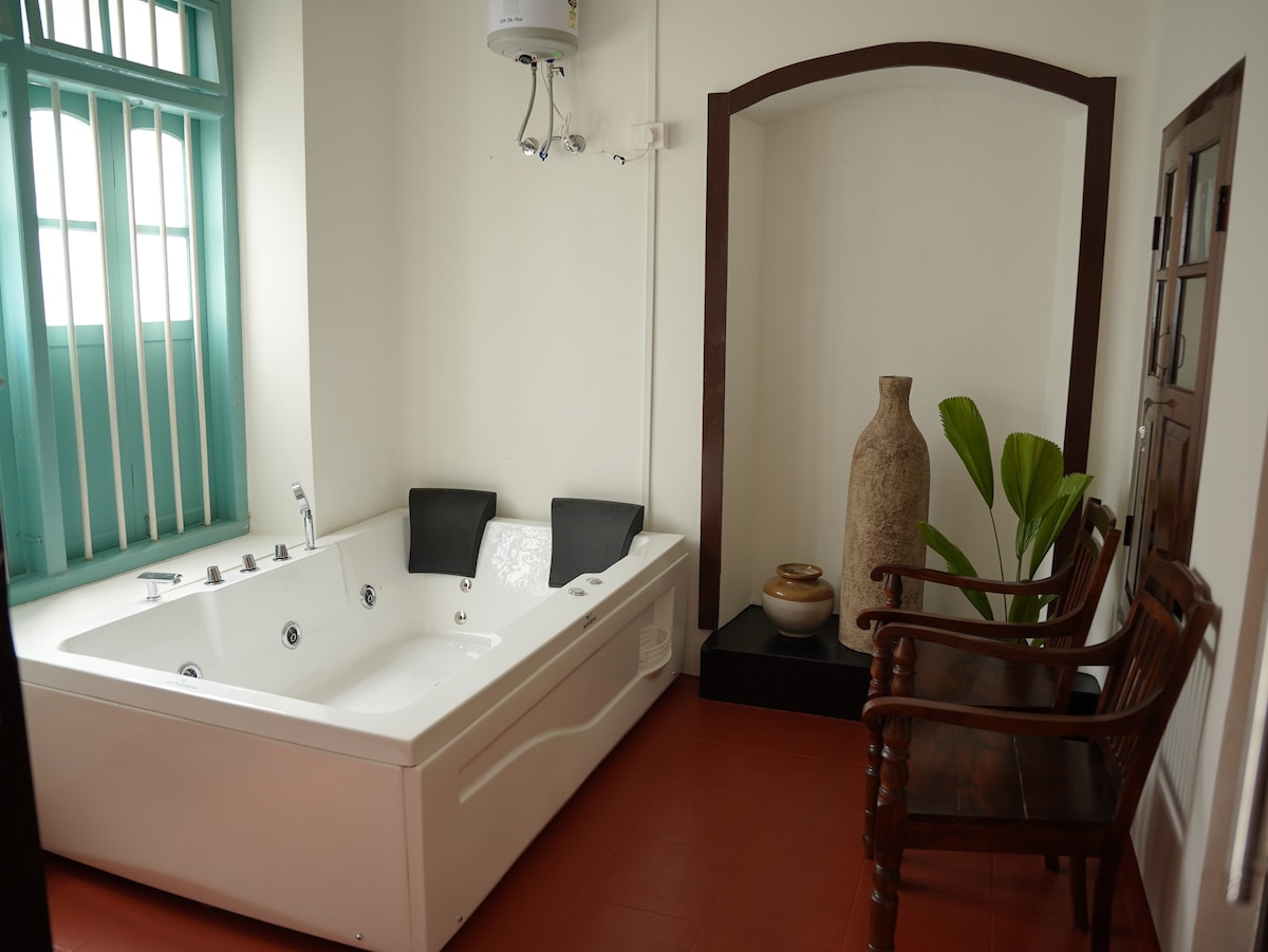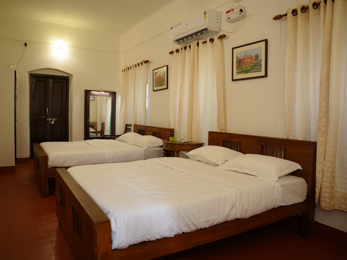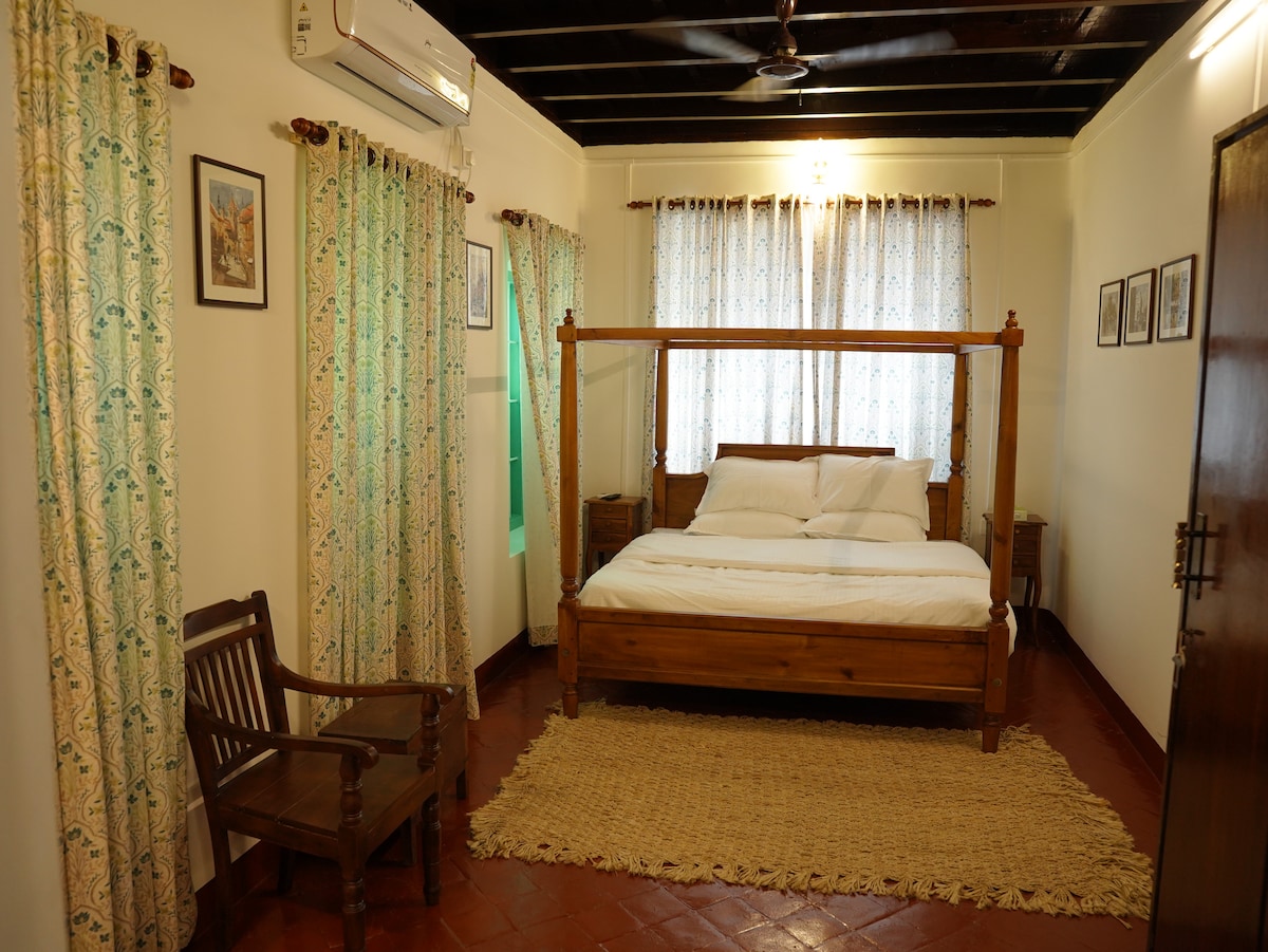 Stay in the ground floor of a beautiful 125 year old heritage home, where Kerala charm meets modern comfort. This private floor features two spacious bedrooms with attached bathrooms. A highlight of this space is the private Jacuzzi, available only on the ground floor—perfect for unwinding after a day in the city. The home is minutes away from Ernakulam South Railway Station and the Metro. Step out to find some of Kochi’s best cafés, restaurants, and local eateries, all within walking distance.