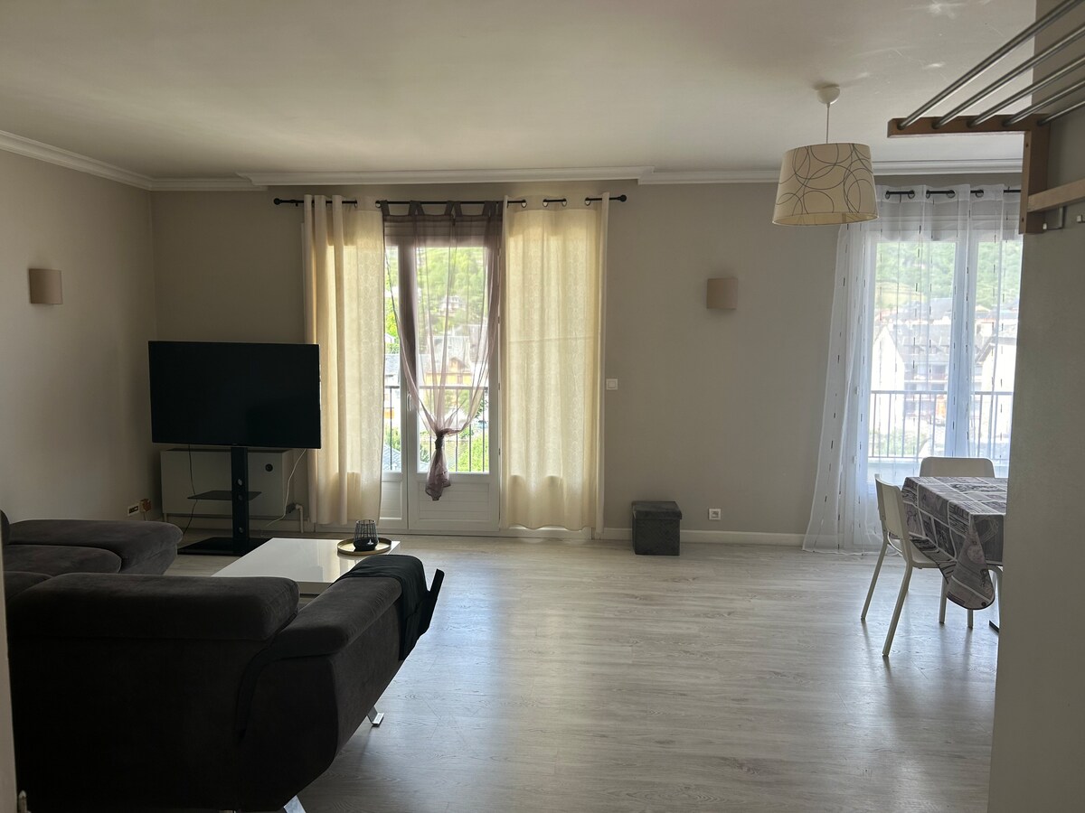 Espalion is gelegen in de Lot Valley tussen Causse en Aubrac . Appartement ligt op 100 m van het stadscentrum, in een residentie op de 1e verdieping , gratis parkeren en lokale beveiligde fiets - Accommodatiecapaciteit: 4 personen. - In de woonkamer een bank, tv - Uitgeruste keuken (vaatwasser, koelvriescombinatie, elektrische oven + inductieplaat, magnetron. 1e slaapkamer met bed in 140 . de 2e twee bedden in 90 Badkamer: douche, afzonderlijk toilet