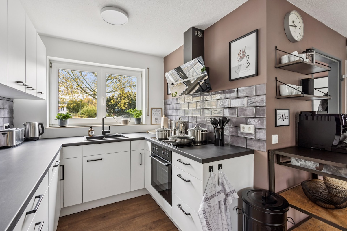 Ruim, gezellig 4-kamer appartement op de 2e verdieping met parkeerplaats. Uitgerust met handwerk en waardevolle originelen in de stijl van het Zwarte Woud. Uniek uitzicht op de Sanagarten en de kathedraal. Op 100 m2 zijn er 2 slaapkamers, een keuken, woonkamer en badkamer en een serre als eetkamer. Tuin delen mogelijk. Sinds2021 kun je onze tuinenauna gebruiken. Het centrum is in minder dan 10 minuten lopen te bereiken. Ideaal voor atleten / rustzoekers. Niet geschikt voor kinderen en dieren.